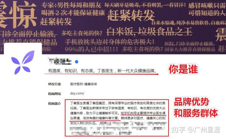 如丁香医生,保持日更频率,产出与自身品牌相关的内容、回答、积累了300w+的粉丝。