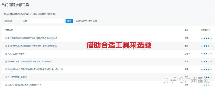 知乎热榜中的内容热度值,是根据该条内容近24小时内的浏览量、互动量、专业加权、创作时间及在榜时间等维度,综合计算得出的。所以,多关注一些KOL ,他们回答哪些内容你就回答哪些问题,然后通过互赞将答案进行冷启动,使回答保持在一个相对较好的位置,实现快速引流。