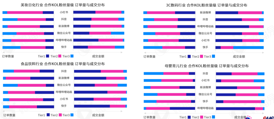 从行业角度看,美妆日化行业KOL营销不再首选微博平台,而是加大将近2倍的预算在小红书深耕;母婴育儿行业的投放重地也从微信迁移至抖音。