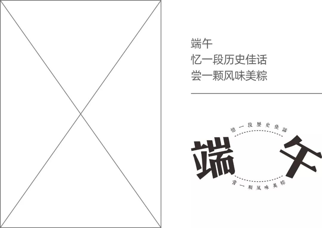 首先对标题进行编排,端午二字倾斜一定的角度增加变化,横排文字倾斜角度一般不要超过45°,角度过大会造成阅读障碍,副标题进行弧形处理,将端午两字串联起来。