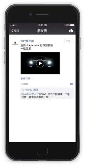 旅游多数是亲人、好友、同事结伴出行,社交属性极强;微信广告 特有的@广告主,@好友,xx好友可见等创新样式提升用户参与欲 望;朋友圈会优先对改品牌的“高影响力用户”进行曝光,在逐层 扩散至其好友,用户的点赞评论行为,将影响其好友的广告参与度。