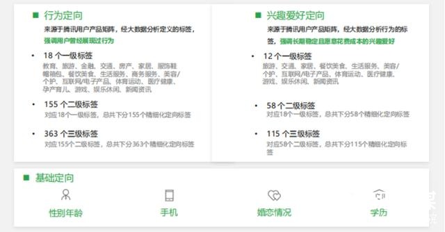 基础人群维度:基础定向,兴趣定向,LBS定向等。