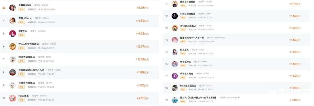如此多的争议,为双11接下来的战局蒙上一层迷雾。其实就单论20号预售直播,它也并不只是李佳琦和薇娅的独秀。