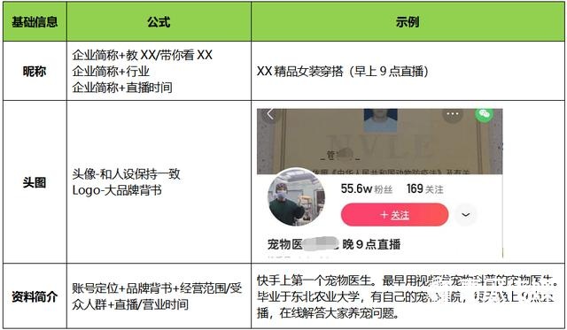 昵称、头图、资料简介,看起来平平无奇,但也是用户看到我们账号后第一眼先看到的地方。所以我们的账号到底是做什么的,在第一印象关卡这里就可以明确展示出来。还是分享基础信息设置的公式: