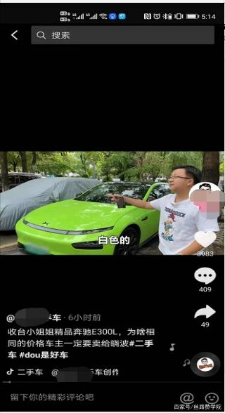 第三种,二手车专业解说帮忙类型。站在第三方的角度,去做解说和帮助客户,买到自己想要的车型。一般分为几类,想买二手车,但是不懂的,怕买到事故车,需要专业人士帮忙去评估一下。第二类就是,买车的预算有限,先买个性价比高的车,需要有人帮忙给推荐一下,帮忙砍价。其实这种相对来说还是比较吸引粉丝的,目前这种做汽车解说帮忙类型的账号,粉丝能达到1千多万的量,确实也是人们有需求能用到。