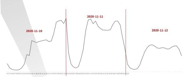 流量在营销活动前后陡增,时间持续2-3天–以2020年双11为例,流量在营销活动前持续走高